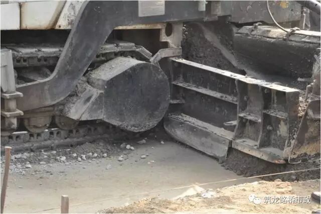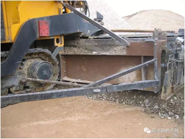 b.基层摊铺时要求先摊路肩,再铺基层,因缺少民工和挖掘机,不培路肩,照铺底基层不误;