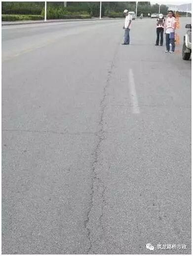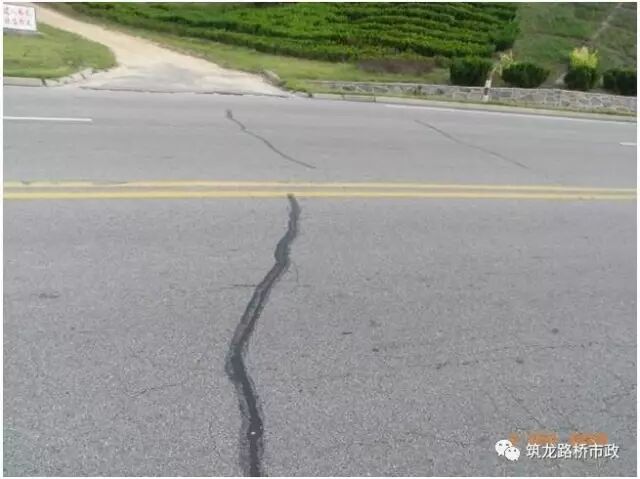 一种主要发生在紧急停车带或路肩部位,其形状是沿路肩边缘向内逐步扩大,呈月牙形,这种裂缝容易使路基发生滑移,危险性很大;