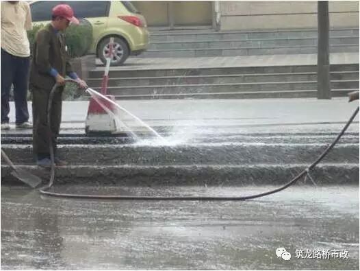 c.摊铺前润底时,水车一不够,便立即抽调基层养生水车,只为了前面加快施工速度,后面养生车够不够也不管不问。