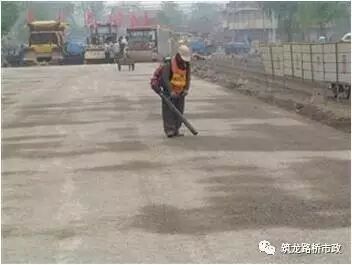 (12)沥青上、中面层施工过程中,要安排专人紧跟在摊铺机后用矿泉水瓶向已完工的面层上浇水,并观察渗水情况,以便及时通知拌合站进行施工配合比的调整。